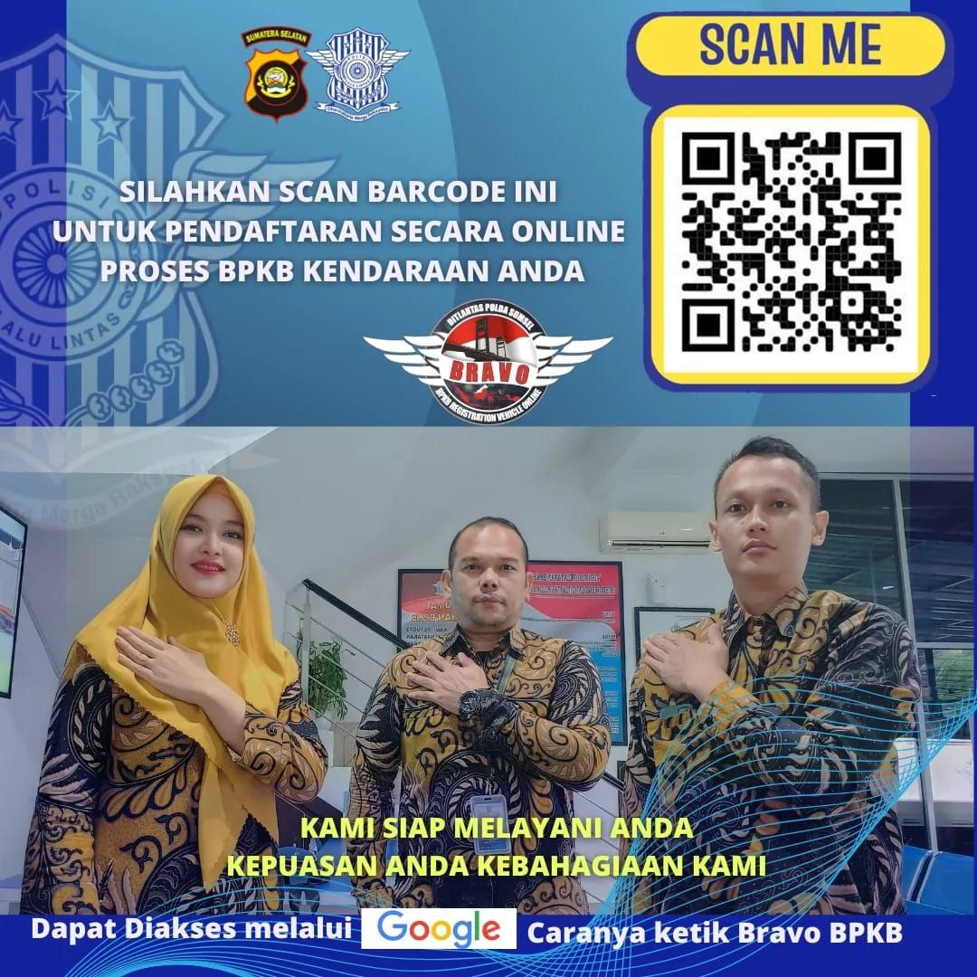 Bravo Adalah Terobosan Ditlantas Polda Sumsel dalam memberikan pelayanan terbaik kepada masyarakat terkait Kepengurusan BPKB (Balik nama, penyesuaian alamat, Ganti No.Pol,Mutas masuk, Blokir kendaraan dan Duplikat BPKB)